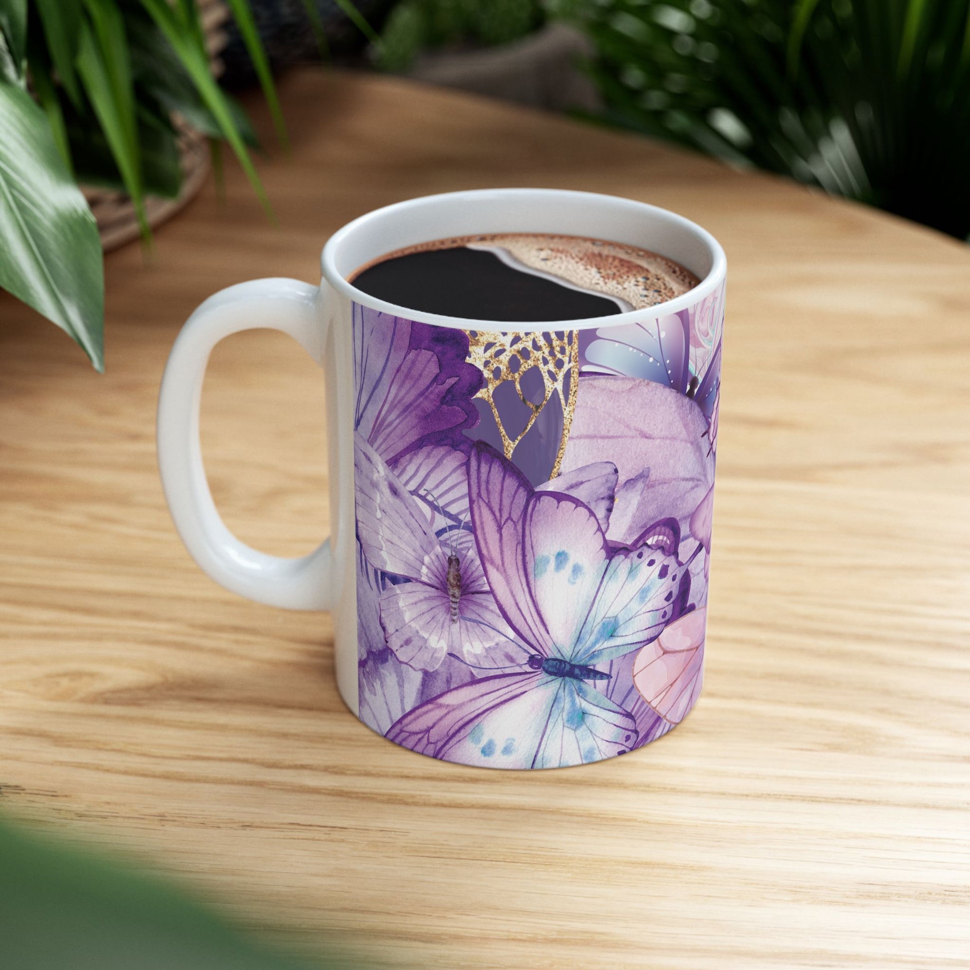 Indulge in a moment of serenity with our beautifully designed ceramic mug. Perfect for sipping your favorite beverage, this mug brings a touch of elegance and whimsy to your daily routine. The vibrant butterfly design evokes feelings of joy and tranquility, making it an ideal companion for cozy mornings or relaxing evenings. Whether at home or in the office, this mug adds a burst of color and inspiration to any setting. It makes a thoughtful gift for birthdays, Mother's Day, or just because. Ideal for nature lovers and anyone seeking a splash of creativity in their drinks!