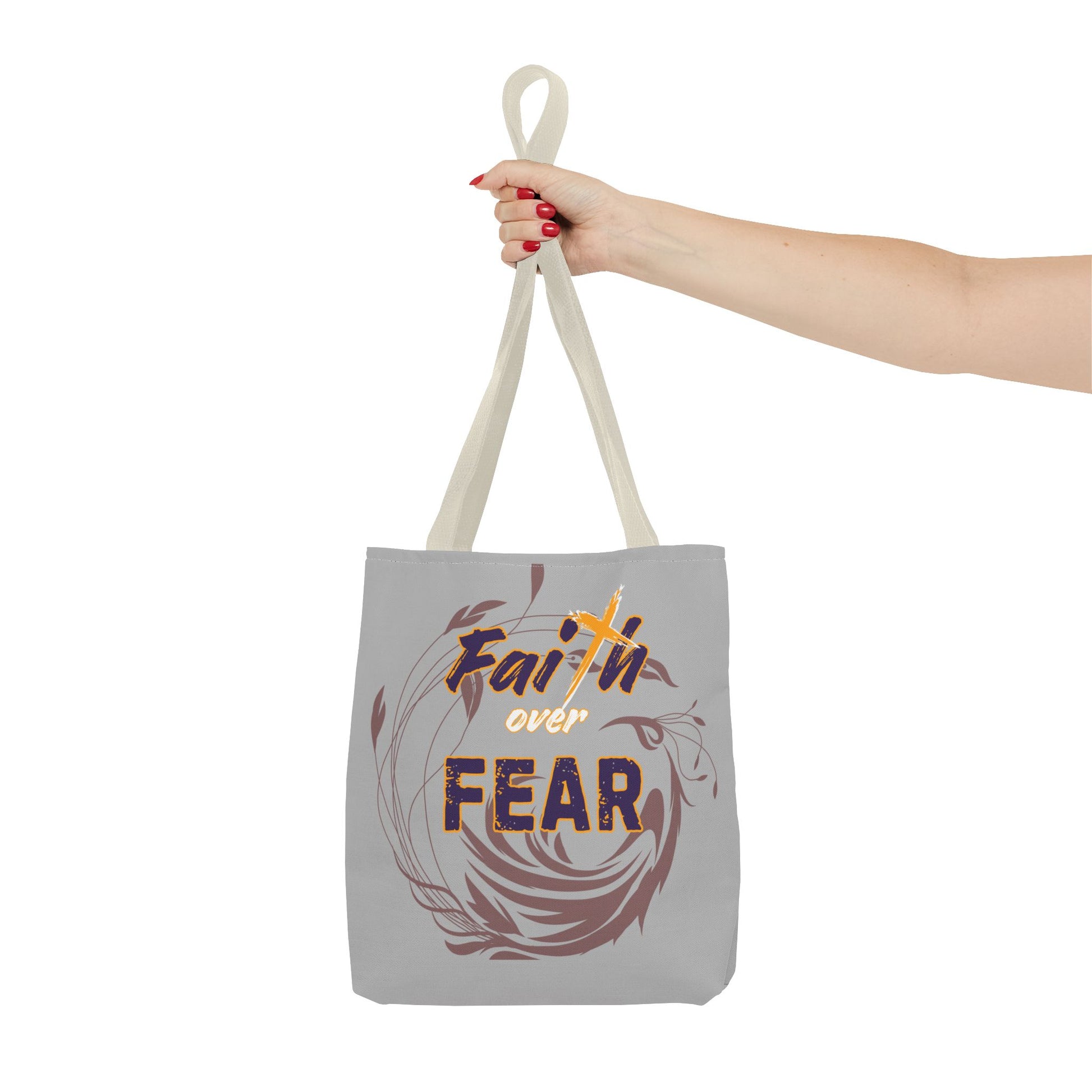 Embrace your journey with this stylish Tote Bag, designed to inspire strength and positivity. The bold design featuring "Faith over Fear" adds a unique touch, making it perfect for daily errands or special outings. Whether you're heading to the gym, going grocery shopping, or enjoying a day out, this tote bag is versatile enough for any occasion. Ideal for those who cherish strength in their beliefs, it makes a wonderful gift for friends and family during holidays, birthdays, or just because. Celebrate faith and resilience every day!