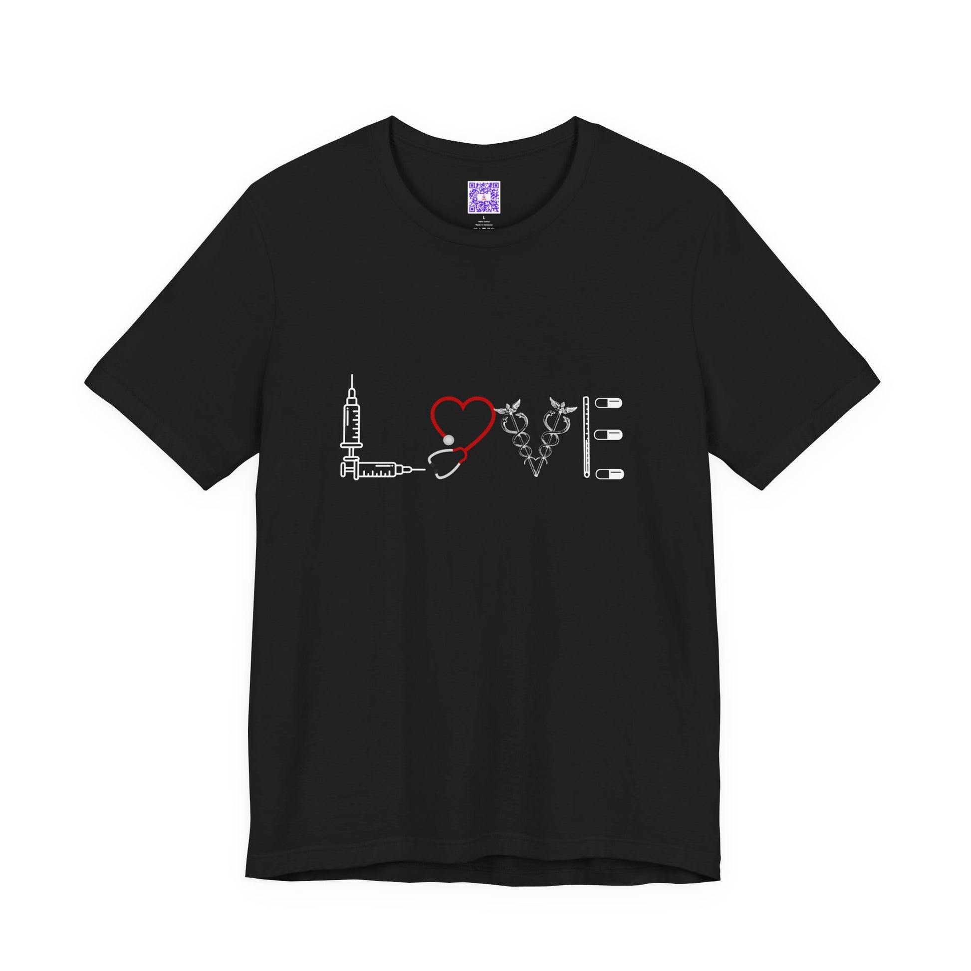 Nurse Tee Love Symbol Medical Tools Unisex Jersey Short Sleeve T-Shirt
